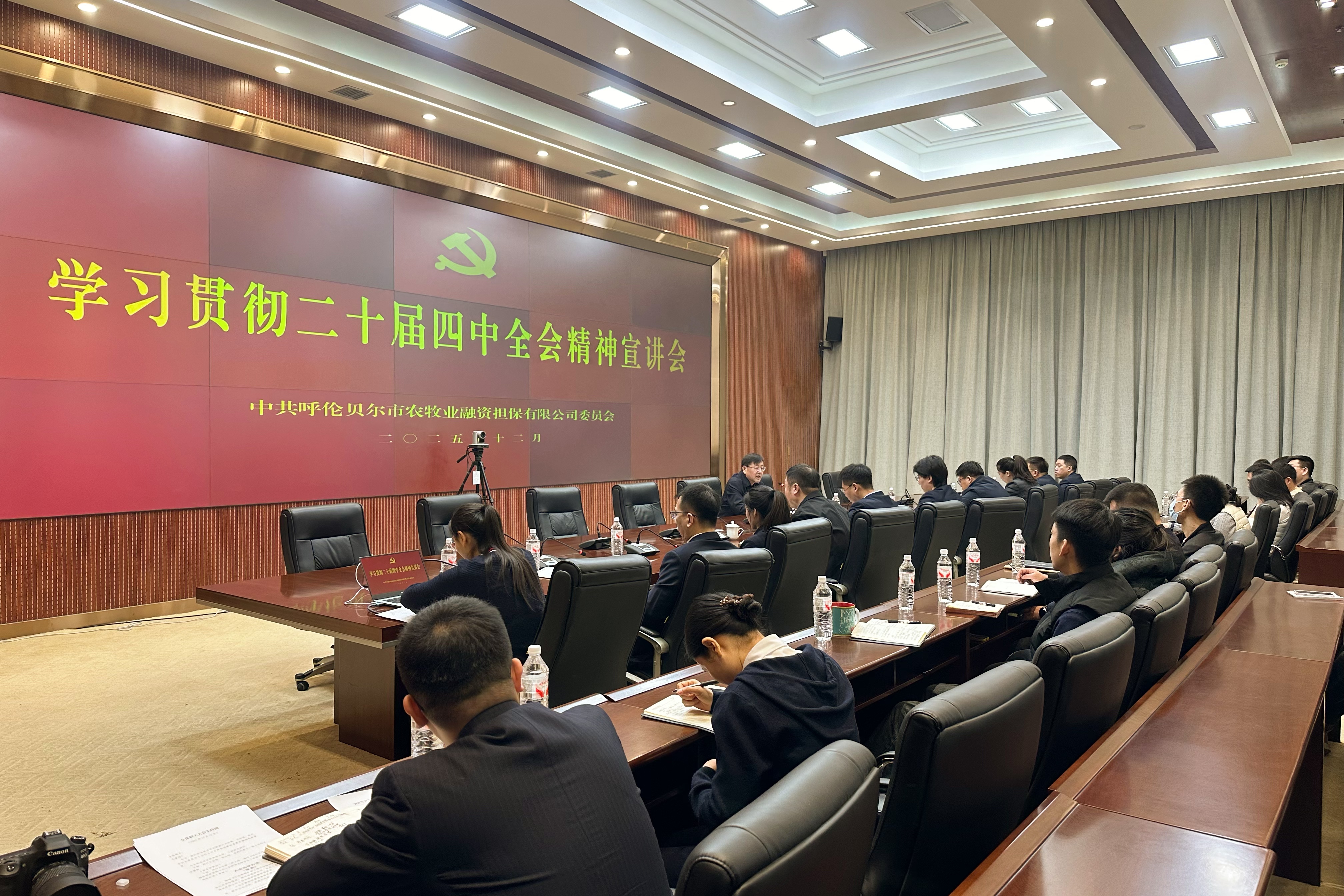 2025年12月12日,呼倫貝爾市農(nóng)牧業(yè)融資擔(dān)保有限公司黨委召開學(xué)習(xí)貫徹黨的二十屆四中全會精神宣講報告會,專題學(xué)習(xí)全會精神并研究部署貫徹落實舉措。公司黨委書記、董事長王增志作宣講報告,全體干部職工參加會議。